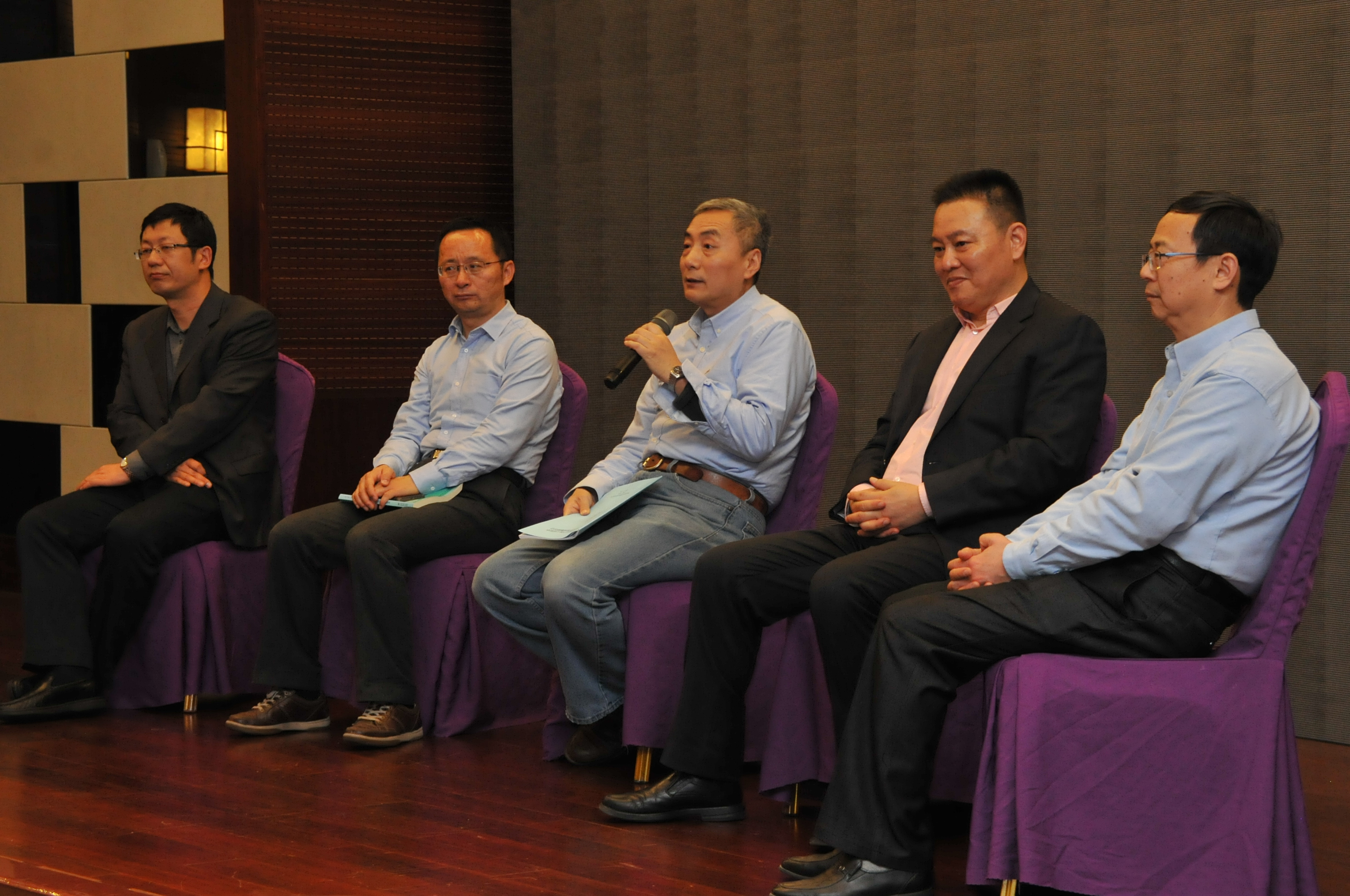 在交流研討環(huán)節(jié),邀請(qǐng)國(guó)家衛(wèi)計(jì)委食品司宮國(guó)強(qiáng)處長(zhǎng)與國(guó)家食品安全風(fēng)險(xiǎn)評(píng)估中心標(biāo)準(zhǔn)中心王竹天主任(左三)、標(biāo)準(zhǔn)三室張儉波主任(左一)、中國(guó)食品添加劑和配料協(xié)會(huì)薛毅副理事長(zhǎng)、科信中心包大躍首席顧問(wèn)上臺(tái),共同企就業(yè)在實(shí)際生產(chǎn)經(jīng)營(yíng)過(guò)程中所遇到的有關(guān)次級(jí)添加劑的提問(wèn)進(jìn)行答疑解惑。