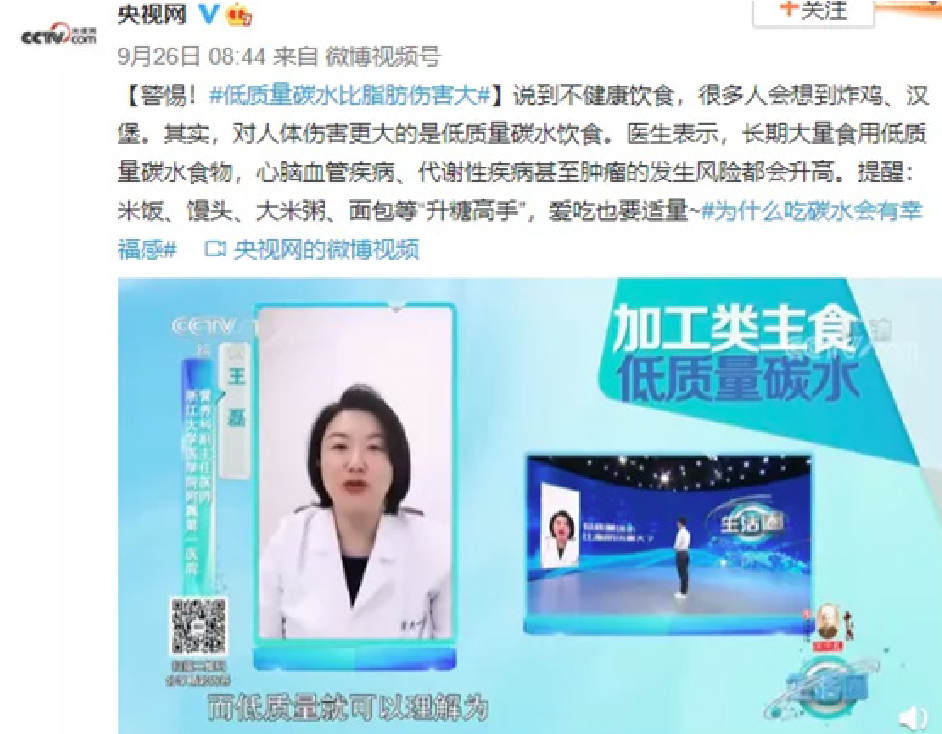 最近央視一個節(jié)目中就有專家指出,低質(zhì)量碳水比脂肪傷害大。低質(zhì)量的碳水就包括了我們平時吃的白米飯、白饅頭、大米粥、面包等主食。