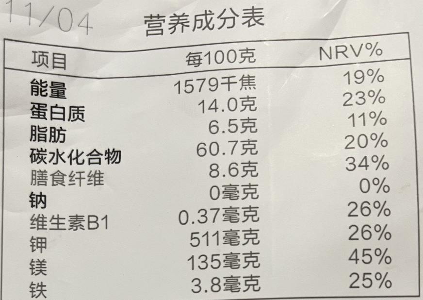 如果食品配料含有或生產過程中使用了氫化和(或)部分氫化油脂時,在營養(yǎng)成分表中還應標示出反式脂肪(酸)含量。采購食品時看食品標簽的朋友都會發(fā)現(xiàn),在食品外包裝的營養(yǎng)成分表中有個“NRV%”。可能大家會好奇這個 NRV 是啥?有什么用?NRV 是英文 nutrient reference values 的首個字母的縮寫,翻譯成中文是“營養(yǎng)素參考值”,是“中國食品標簽營養(yǎng)素參考值”的簡稱。“營養(yǎng)素參考值”是專門用于食品營養(yǎng)標簽的一項內容,是用來比較食品營養(yǎng)成分含量多少的一組參考值,是消費者選擇食品時的一種營養(yǎng)參照尺度。