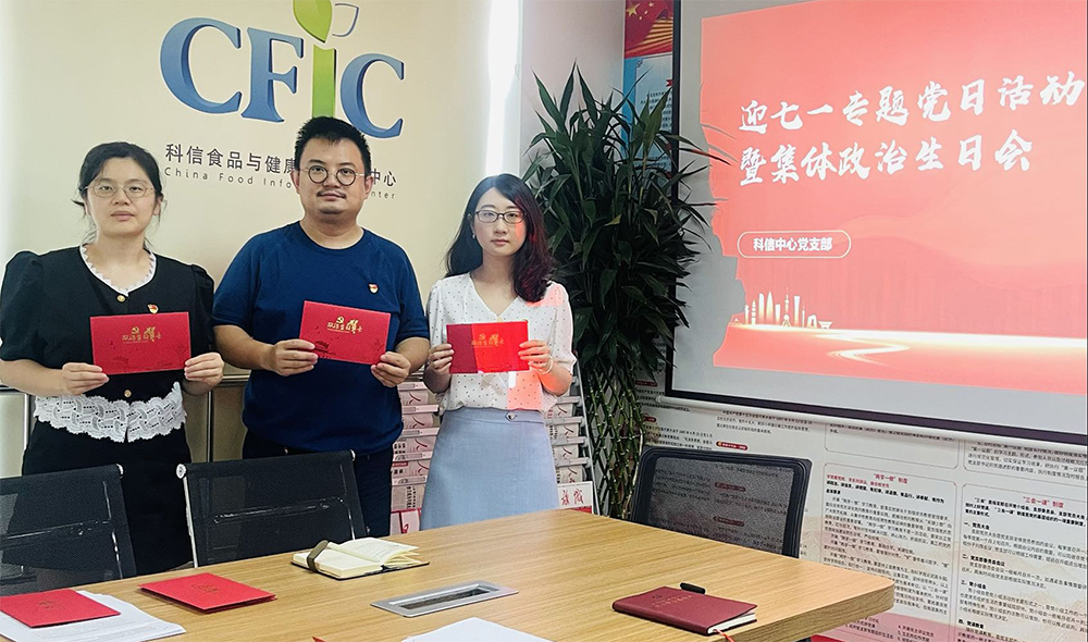活動首先由吳書記代表科信中心黨支部向每位黨員送上特制的“政治生日賀卡”,并送上祝福和希望寄語。賀卡上印有入黨誓詞,清晰記錄了黨員的入黨時(shí)間,一日入黨、一生忠誠,鼓舞激勵(lì)著黨員干部不忘光輝歷程,牢記初心使命,積極擔(dān)當(dāng)作為。吳書記在發(fā)言時(shí)強(qiáng)調(diào):“為黨員過‘政治生日’是‘不忘初心、牢記使命’長效機(jī)制的重要內(nèi)容,是加強(qiáng)黨員思想政治教育、強(qiáng)化黨員意識的有效載體,支部為全體黨員同志集體過‘政治生日’,發(fā)放了政治生日賀卡。這張?zhí)貏e的賀卡,讓大家感受到來自組織的關(guān)懷、‘家’的溫暖的同時(shí),也以莊重的儀式感提醒黨員干部時(shí)刻不忘初心,牢記使命,激勵(lì)黨員同志更好地踐行黨員宗旨,堅(jiān)定信念,砥礪前行”。隨后,每位黨員分享入黨初心,講述自己的入黨故事。大家還紛紛表示:“這是組織送給我們的一份特別禮物,溫暖著每一顆心靈,滋潤著每一片心田。”作為一名黨員,將把“紅色賀卡”轉(zhuǎn)化為扎扎實(shí)實(shí)干好本職工作的強(qiáng)大動力,永葆為民服務(wù)初心,以頑強(qiáng)的意志、必勝的信心、全部的精力,積極投身到構(gòu)建新時(shí)代食品信息交流平臺高質(zhì)量發(fā)展新格局中,忠于職守、勇?lián)姑?、勤奮敬業(yè)、積極工作,為我國公眾舌尖上的健康做出更多貢獻(xiàn)。