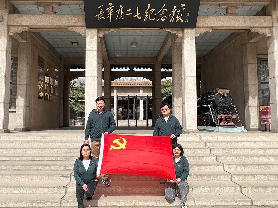 長辛店被譽(yù)為“北方的紅星”,北方共產(chǎn)黨早期組織建立后,黨的革命先輩們在長辛店向工人群眾傳播馬克思主義真理,提高工人階級覺悟,涌現(xiàn)出史文彬等一批工人階級代表,開展了長辛店鐵路工人罷工、京漢鐵路工人大罷工等轟轟烈烈的工運(yùn)斗爭。“二七”紀(jì)念館是工人運(yùn)動(dòng)的紀(jì)念地,是近代中國工人革命運(yùn)動(dòng)的搖籃,記錄著一幕幕波瀾壯闊的抗?fàn)幨?。在紀(jì)念館中,通過200多幅圖片、3部視頻影片以及約50件實(shí)物,系統(tǒng)回顧了五四運(yùn)動(dòng)后中國工人運(yùn)動(dòng)在探索中一路前行的歷史,直觀感受了中國工人階級在中國共產(chǎn)黨的領(lǐng)導(dǎo)下,在中國革命、建設(shè)和改革開放各個(gè)歷史時(shí)期所作出的巨大貢獻(xiàn)和展現(xiàn)出的偉大精神。黨員們瞻仰陳列柜中老革命家留下的遺物,了解項(xiàng)英、林祥謙、史文彬等老一輩革命家在長辛店開展革命活動(dòng)和工人運(yùn)動(dòng)的光輝事跡,領(lǐng)悟中國工人階級的奮斗和犧牲精神。大家懷著無比崇敬的心情參觀了各個(gè)展廳,詳細(xì)了解二七大罷工發(fā)生的歷史背景、事件經(jīng)過和歷史影響,回顧那段血雨腥風(fēng)的歷史,重溫工人階級英勇戰(zhàn)斗、不怕犧牲的革命精神。