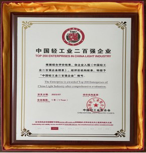 金沙河集團榮獲“2022 年度中國輕工業(yè) 200 強企業(yè)”稱號