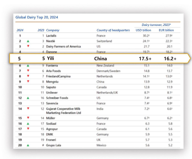 8月26日,荷蘭合作銀行發(fā)布“2024全球乳業(yè)20強”榜單,伊利再度蟬聯(lián)全球乳業(yè)五強、連續(xù) 11 年穩(wěn)居亞洲乳業(yè)第一,再次成為唯...