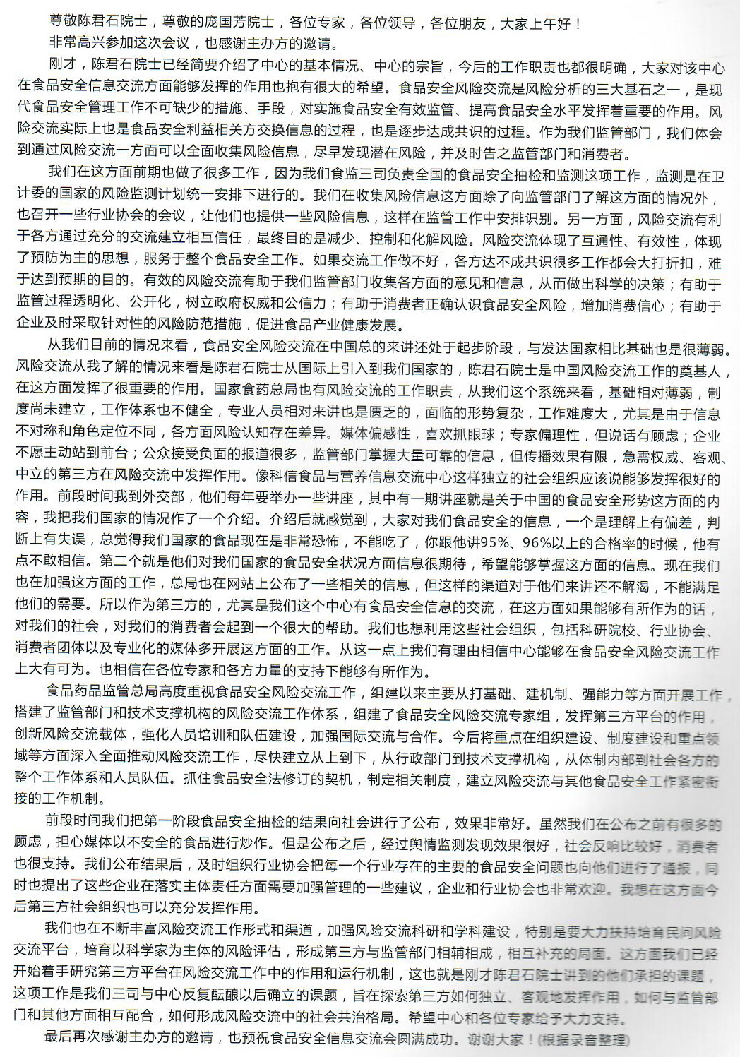 國家食品藥品監(jiān)管總局于軍司長在食品安全信息交流會上講話