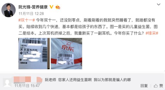 然后就有網(wǎng)友留言,阮老師 您家人還用益生菌啊 我以為那就是騙人的呢?