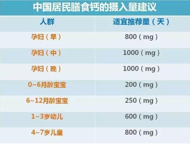 這張表是我國居民膳食指南推薦每日鈣攝入量。