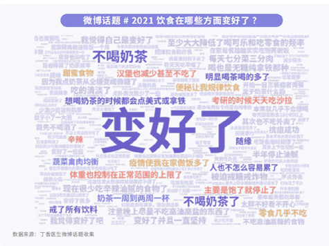 第三,2021的食品熱詞是“無糖飲料”,人們提到買得最多的品類是無糖飲料。而很多人開始選擇“無糖飲料”,其實(shí)也跟身材困擾有關(guān),不少人因?yàn)檎J(rèn)為“無糖飲料”能減肥、能幫助自己緩解身材困擾。