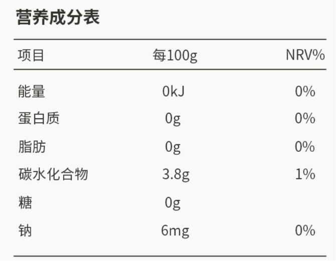 2. 看營(yíng)養(yǎng)成分表。營(yíng)養(yǎng)成分表會(huì)標(biāo)注每100毫升產(chǎn)品中碳水化合物的含量及能量情況。部分食品或飲料的營(yíng)養(yǎng)成分表會(huì)單獨(dú)標(biāo)注“糖”的含量,這有助于消費(fèi)者判斷所購(gòu)買產(chǎn)品是否真正為“0糖”。