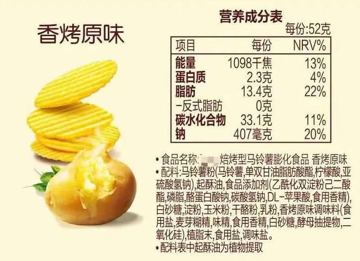 一款非油炸的薯片,1/5 都是脂肪。