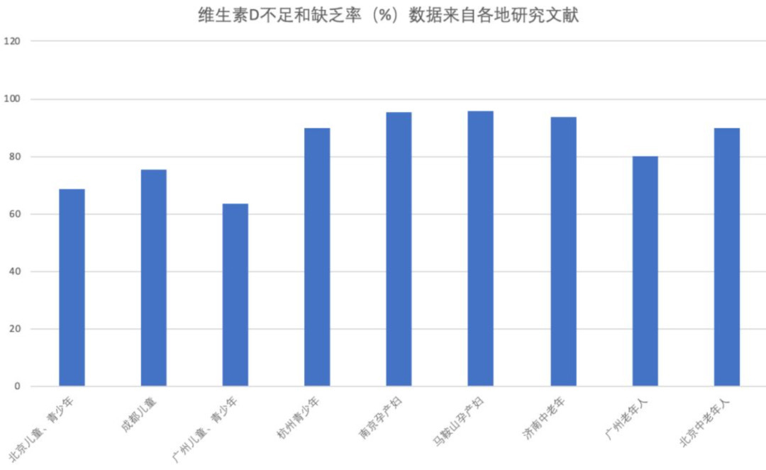文獻中的數(shù)據(jù)雖然有所出入,但不同人群 VD 攝入不足的比例大約在 60-80%。