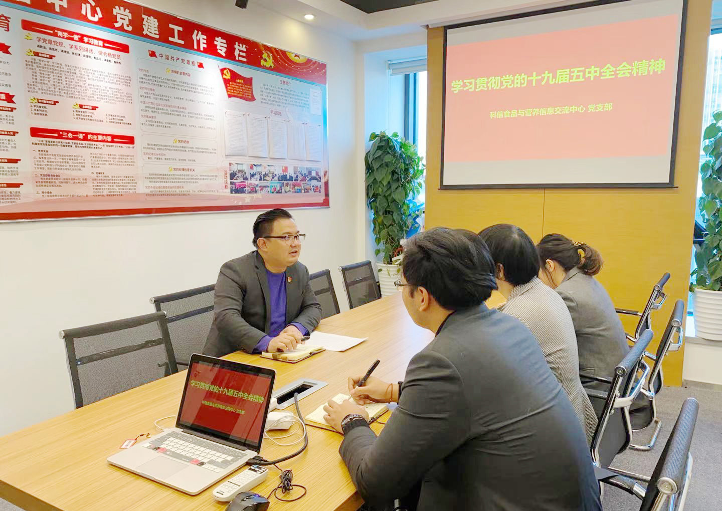10 月 30 日上午,科信食品與營(yíng)養(yǎng)信息交流中心組織全體黨員集體學(xué)習(xí),第一時(shí)間傳達(dá)學(xué)習(xí)黨的十九屆五中全會(huì)精神、集中學(xué)習(xí)《中國(guó)共產(chǎn)黨第十九屆委員會(huì)第五次全體會(huì)議公報(bào)》和人民日?qǐng)?bào)社論。中心黨支部書記吳桐主持學(xué)習(xí)。
