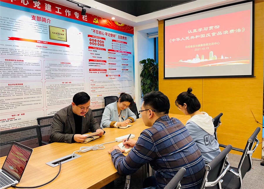 為進(jìn)一步學(xué)習(xí)貫徹習(xí)近平總書記關(guān)于制止餐飲浪費(fèi)行為的重要指示精神,根據(jù)民政部部管社會(huì)組織綜合黨委相關(guān)要求,10月21日,科信中心黨支部組織全體黨員及入黨申請(qǐng)人集中學(xué)習(xí)了《中華人民共和國(guó)反食品浪費(fèi)法》有關(guān)內(nèi)容。