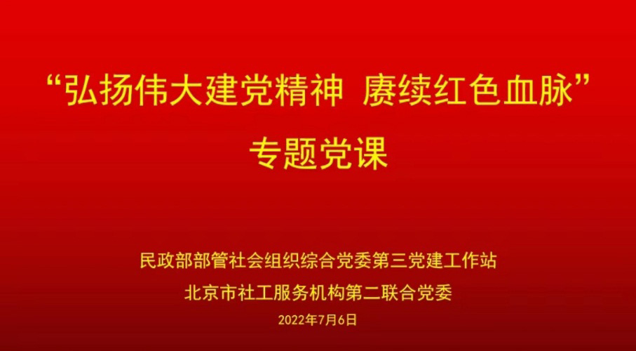 7月6日下午,民政部部管社會組織綜合黨委第三黨建工作站和北京市社工服務(wù)機構(gòu)第二聯(lián)合黨委聯(lián)合組織開展“弘揚偉大建黨精神 賡續(xù)紅色基因血脈”專題黨課學習,這是第三黨建工作站組織開展的以“慶‘七一’ 喜迎二十大”為主題的系列活動之一??菩胖行狞h支部組織全體黨員和入黨積極分子參加此次線上學習活動。