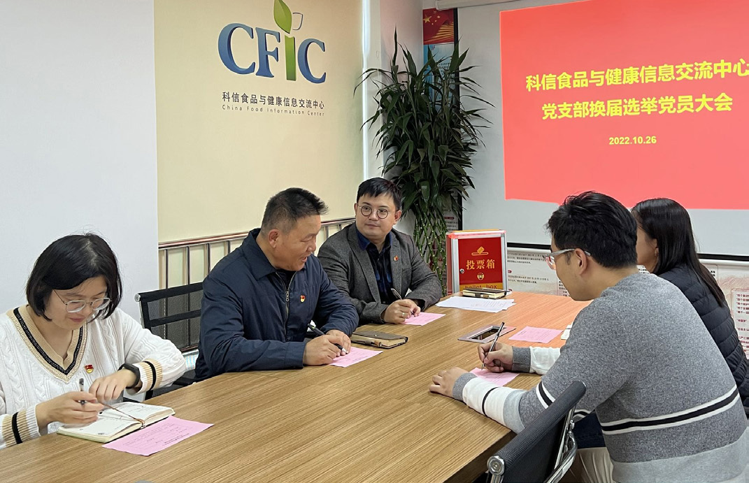 新當(dāng)選的支部書記、科信中心理事長(zhǎng)包大躍同志代表新一屆黨支部負(fù)責(zé)人作表態(tài)發(fā)言,并對(duì)下一步工作進(jìn)行安排部署。他在發(fā)言中指出,此次換屆工作注重突出形式與內(nèi)容、思想和業(yè)務(wù)的緊密結(jié)合,使支部的政治核心與戰(zhàn)斗堡壘作用進(jìn)一步凸顯,支部利用換屆總結(jié)工作、梳理成績(jī)與不足、挖掘思想根源、明確發(fā)展和前進(jìn)方向,讓整個(gè)換屆工作成為教育管理黨員的一堂生動(dòng)思政實(shí)踐課,達(dá)到了很好的黨員教育管理效果。同時(shí),他還提出希望全體黨員和新班子在新的起點(diǎn)上,發(fā)揚(yáng)和繼承以往好經(jīng)驗(yàn)、好做法的同時(shí),著眼新時(shí)代新征程新任務(wù),與時(shí)俱進(jìn),務(wù)實(shí)創(chuàng)新,充分發(fā)揮戰(zhàn)斗堡壘作用和黨員的模范帶頭作用,團(tuán)結(jié)帶領(lǐng)全體黨員堅(jiān)定信仰守初心,嚴(yán)守紀(jì)律講規(guī)矩,立足主責(zé)主業(yè),注重黨建和業(yè)務(wù)的深度融合,積極探索黨支部標(biāo)準(zhǔn)化、規(guī)范化建設(shè),發(fā)揮黨建引領(lǐng)作用,協(xié)助政府相關(guān)部門在疫情防控、健康中國(guó)建設(shè)、食品安全社會(huì)共治、鄉(xiāng)村振興戰(zhàn)略等方面主動(dòng)作為,不斷提升黨支部的組織力、戰(zhàn)斗力和凝聚力。