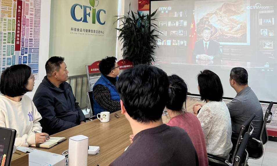 大家也都紛紛表示,習(xí)近平主席新年賀詞溫暖人心、充滿力量、令人鼓舞、催人奮進,字字句句飽含著對祖國對人民的深情厚愛,對中國未來發(fā)展美好前景的堅定信心以及對全黨全國各族人民的殷切囑托,為我們的工作進一步指明了方向、注入了強大動力,激勵我們擔(dān)負時代重任、不忘初心使命,不負韶華、繼續(xù)奮斗。我們要用心感悟習(xí)近平主席新年賀詞的深刻內(nèi)涵,將學(xué)習(xí)賀詞精神與學(xué)習(xí)黨的二十大精神緊密結(jié)合,腳踏實地,埋頭苦干,不負時代,不負華年,更加奮發(fā)有為,推動新時代我國食品信息交流工作高質(zhì)量發(fā)展!