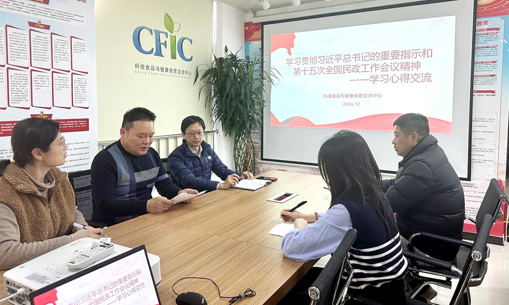 為深入學(xué)習(xí)踐行習(xí)近平總書記對(duì)民政工作重要指示和第十五次全國(guó)民政會(huì)議精神,根據(jù)部管社會(huì)組織綜合黨委要求,科信食品與健康信息交流中心黨支部于 2024 年 12 月 4 日組織召開了“學(xué)習(xí)貫徹習(xí)近平總書記關(guān)于民政工作重要指示和第十五次全國(guó)民政工作會(huì)議精神——學(xué)習(xí)心得交流”主題黨日活動(dòng)。會(huì)議由黨支部書記包大躍同志主持。