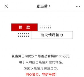 麥當(dāng)勞向武漢市慈善總會(huì)捐款 100 萬(wàn)元
